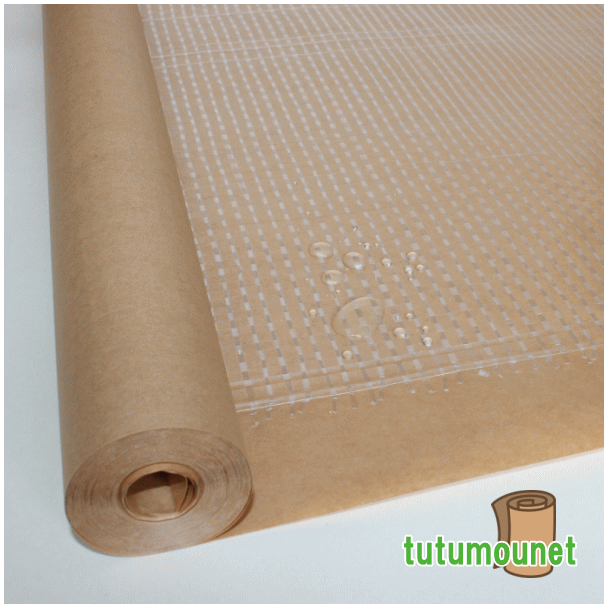 強度・防水・防湿性にすぐれた包装紙です。50gクラフト紙+PEクロスの50gPEクロス紙(ポリクロス紙)です。ポリクロス紙・ラミパワー紙などともよばれます。