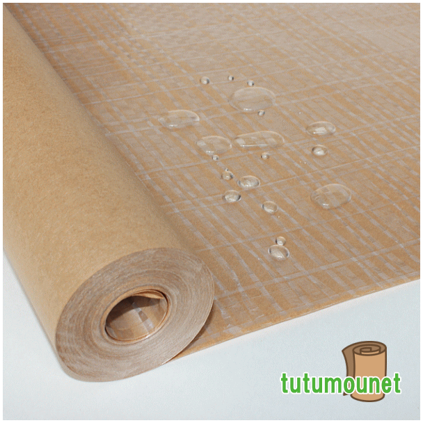 強度・防水・防湿性にすぐれた包装紙です。50gクラフト紙+PEクロスの50gPEクロス紙(ポリクロス紙)です。ポリクロス紙・ラミパワー紙などともよばれます。